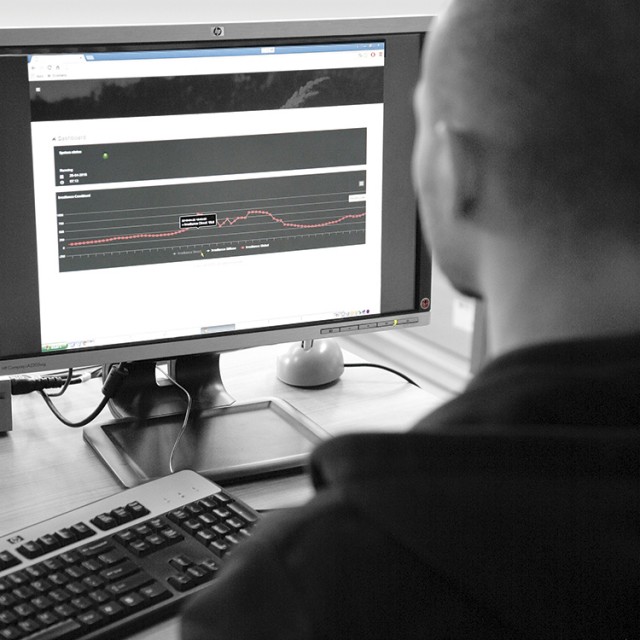 Il sistema è nativamente dotato di un data logger interno in grado di registrare tutti i parametri in unico set di dati; è possibile scegliere un'interfaccia Ethernet o Modbus® RS-485 (RTU o ASCII) per il download dei dati. Questi possono essere consultati con una semplice interfaccia, provvista anche di grafici e informazioni sullo stato dei sensori, a cui è possibile accedere anche sul posto con un device quale un laptop, smartphone o table utilizzando la connettività Wi-FI.